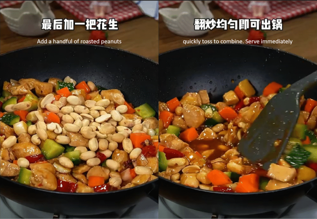 ⑥ Add a handful of roasted peanuts and quickly toss to combine. Serve immediately.