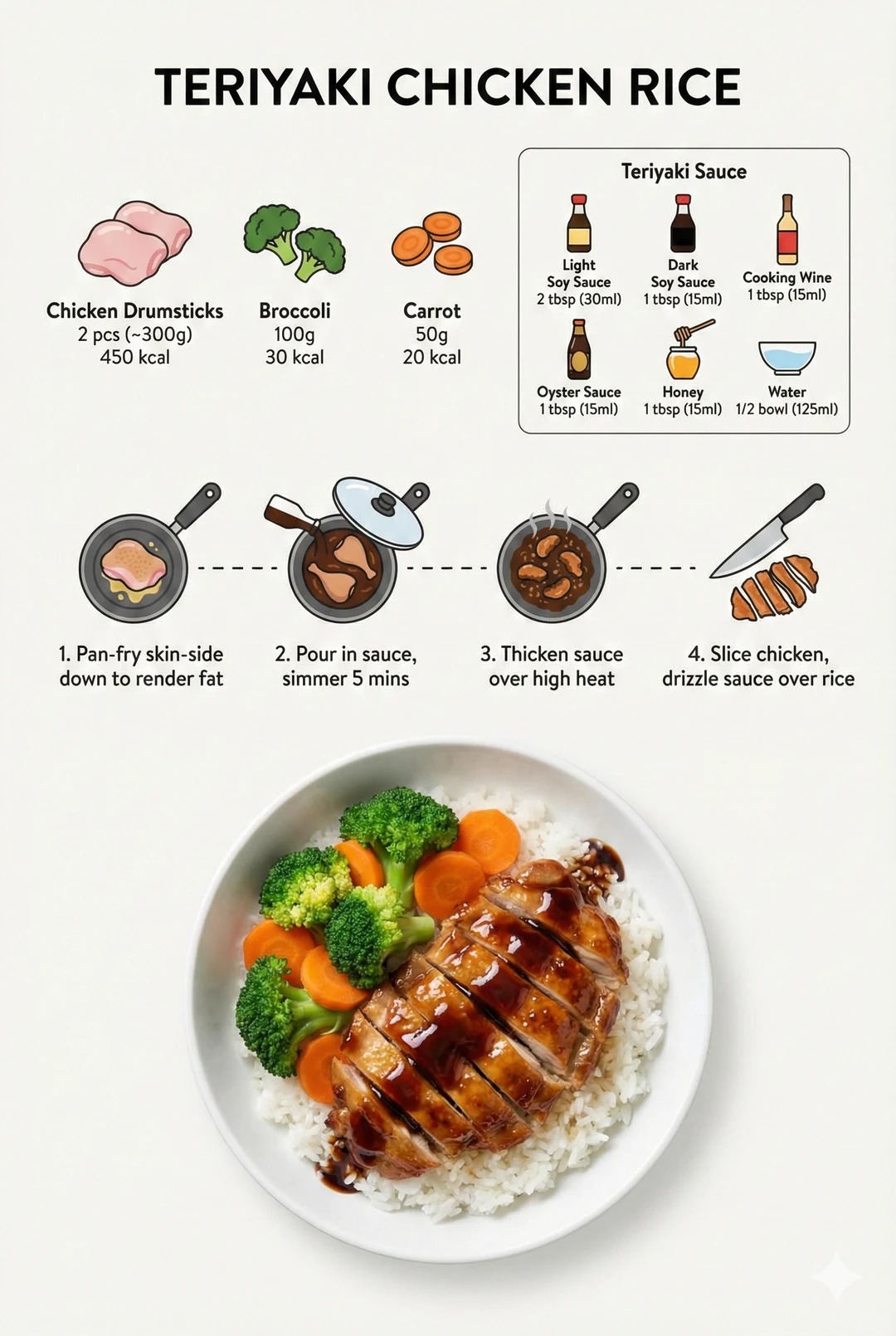 The Ultimate Teriyaki Sauce (Must Save!): 2 tbsp light soy sauce + 1 tbsp dark soy sauce (for color) + 1 tbsp oyster sauce + 1 tbsp honey (the key to that glossy shine) + 2 tbsp cooking wine + half a bowl of water